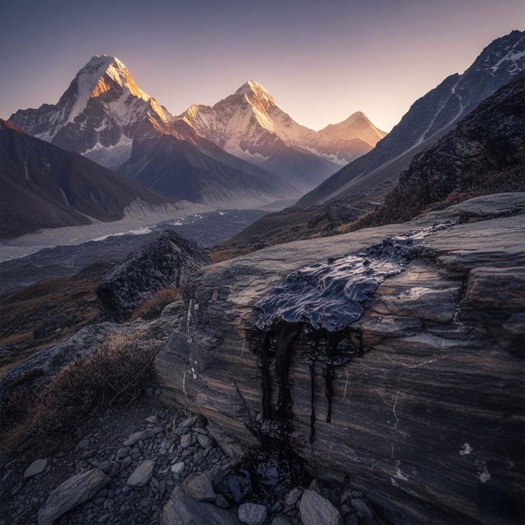 El corazón de Vigore Attivo es el Shilajit, una resina pura y potente recolectada a mano a más de 5.000 metros de altitud en las cumbres vírgenes del Himalaya.